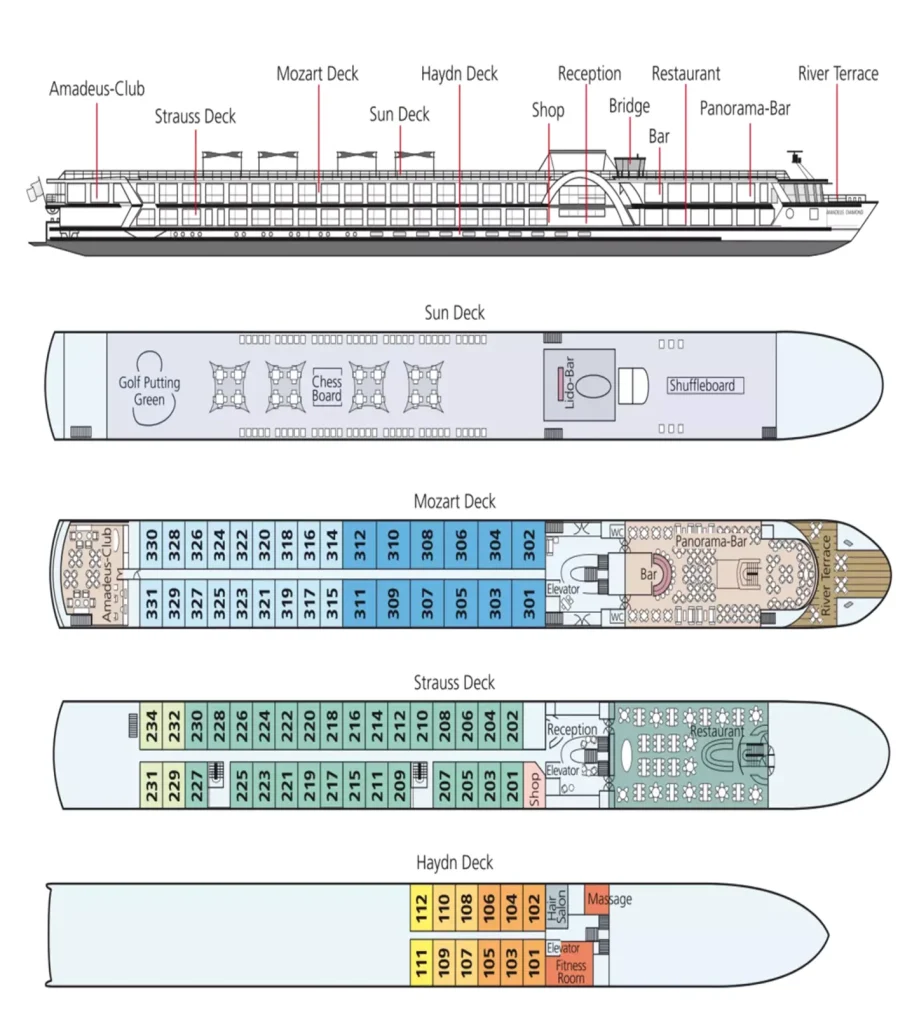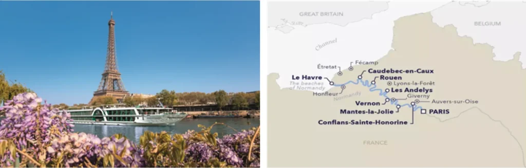 Işığın şehri ikonik Paris’ten başlayıp yine Paris’te sona erecek olan bir haftalık rotamız benzersiz güzellikler barındırıyor. Van Gogh, Cezanne ve Gauguin’ in ayak izlerini takip edeceğimiz seyahatimizde; muhteşem güzellikteki Monet Bahçelerinden, Paris’in ikonik anıtlarına, II. Dünya savaşının en sıcak günlerinin yaşandığı Normandiya sahilinden, Fransa kırsalının şirin köylerine harika güzellikleri tecrübe edeceğiz. Fransız gurme lezzetlerini de tadacağımız bu rota unutulmaz seyahatleriniz arasına girecek. Avrupa’nın en bilinen ve tercih edilen nehir firmalarından Amadeus River Cruises’a ait olan 5* Amadeus Diamond gemisi 2019 senesinde tamamen renove edilmiştir ve bölgedeki en şık gemilerdendir. 5* otel konforu ve birinci sınıf servis amacıyla hizmet veren gemi toplam 146 yolcu kapasitelidir. Toplam 40 personelin görev yaptığı 5* Deluxe Amadeus Diamond’ın tüm kabinlerinde konfor ön planda tutulmuştur. Her kabinde TV, saç kurutma makinesi, kasa, dahili telefon, birleştirilebilir iki yatak, kişisel havalandırma sistemi ve duş mevcuttur.