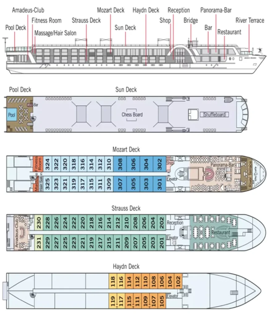 Dünya’nın en bilinen ve tercih edilen nehir firmalarından Lüftner Cruises’a ait olan 5* Deluxe Amadeus Provence birinci sınıf otel konforu ve kaliteli servis amacıyla hizmet vermektedir. Deluxe gemi toplam 140 yolcu kapasitelidir. Toplam 40 personelin görev yaptığı Deluxe Amadeus Provence filonun en şık gemilerinden birisi olup tüm kabinlerinde konfor ön planda tutulmuştur. Her kabinde Multimedya TV, saç kurutma makinesi,minibar,kasa, dahili telefon, birleştirilebilir iki yatak, kişisel havalandırma sistemi ve duş mevcuttur.